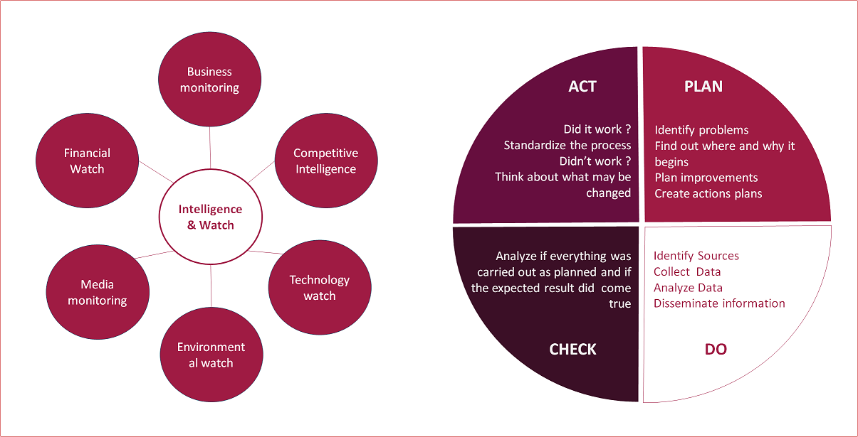 Assesses the business practices of a targeted activity. Usually its purpose is to collect, process and disseminate information on products and markets. Business monitoring is therefore closely linked to the launch of new products and the detection of new markets. For this reason, particular attention is devoted to market research (qualitative or quantitative). This Intelligence & Watch also concerns the observation of customers, suppliers, subcontractors or distributors. Beyond marketing studies, it is about being interested in the evolution of customer needs over the long term.
